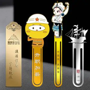 Paper clip bookmarks in our collection include various paperclip forms: hollowed-out paper clip bookmarks, engraved metal bookmarks, soft PVC paper clips, (in a wider sense, printing paper clips included) in custom designs made according to customers’ requests. They are mostly made of 0.3-0.4mm stainless steel sheet metal, copper, or soft PVC and wire.