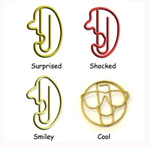 Shaped paper clips designed in the form of head, eye, nose, lips, and ears are typically decorative and novelty items that serve both functional and aesthetic purposes. They look greatly stylish, creative, cute and useful. Based on common uses, these decorative paper clips have some potential applications: